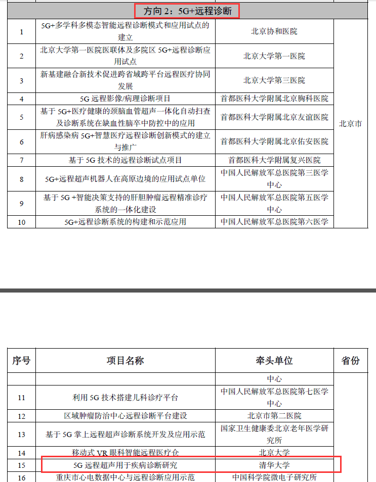 2021年8月17日,國家工信部公示了“5G+醫(yī)療健康應用試點項目”名單,其中,華聲醫(yī)療參與的項目成功入選“5G+遠程診斷”項目,該項目是由清華大學牽頭的《5G遠程超聲應用于疾病診斷研究》項目。