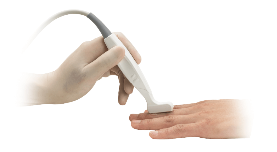 不同部位的掃查及可視化引導(dǎo)。創(chuàng)新的中位線設(shè)計和凸出的探頭標(biāo)記設(shè)計,